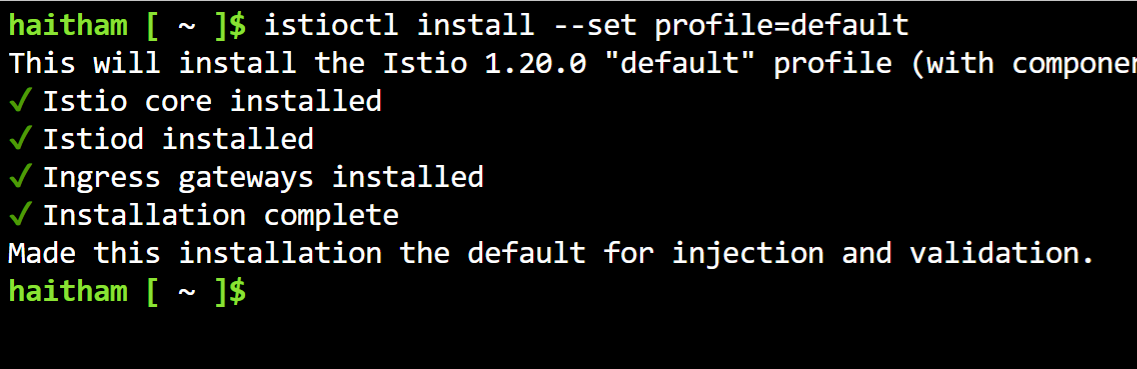 You may not need to follow this step if you already have Istio deployed. I'll take a path of deploying the default profile to get an ingress gateway and the core components deployed: