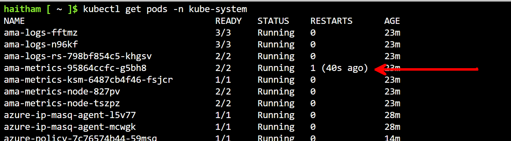 kubectl create configmap ama-metrics-prometheus-config --from-file=prometheus-config -n kube-systemAs a confirmation that all is well after you apply the config map, you should find in about 2-3 minutes that the AMA agents in the kube-system namespace have restarted: