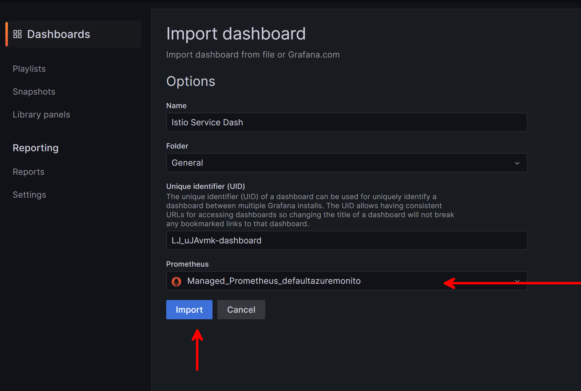 You can continue following the import process to get the main Istio Dasbhoards into Grafana.