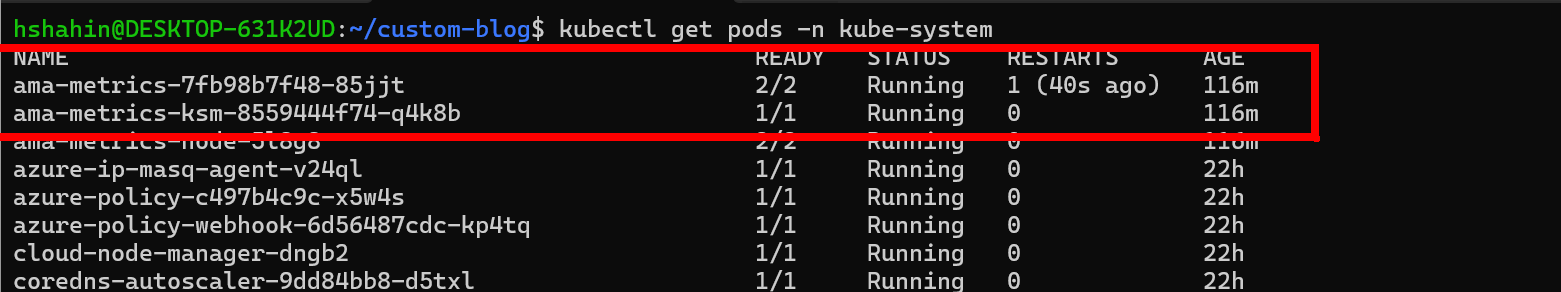 kubectl create configmap ama-metrics-prometheus-config --from-file=prometheus-config -n kube-systemAs a few checks to see if this worked, let's first validate that we see the replica pods restarting which means it saw we updated the configuration: