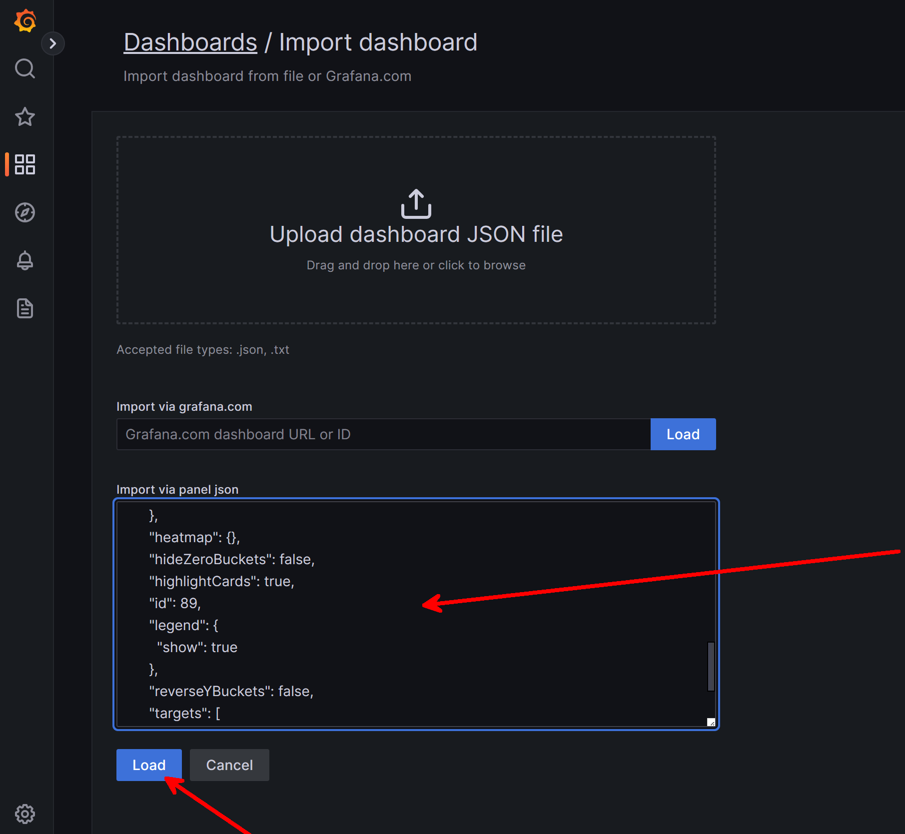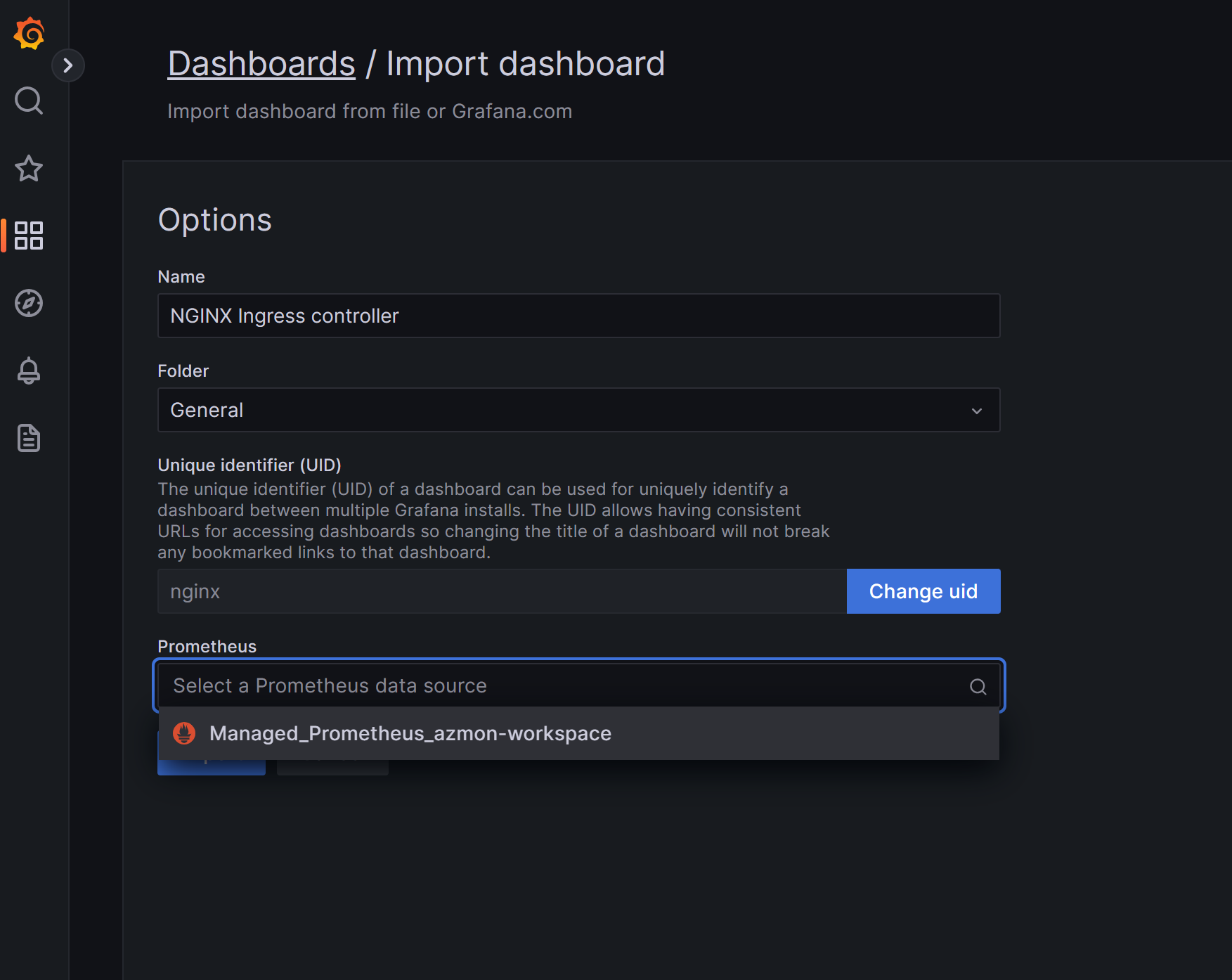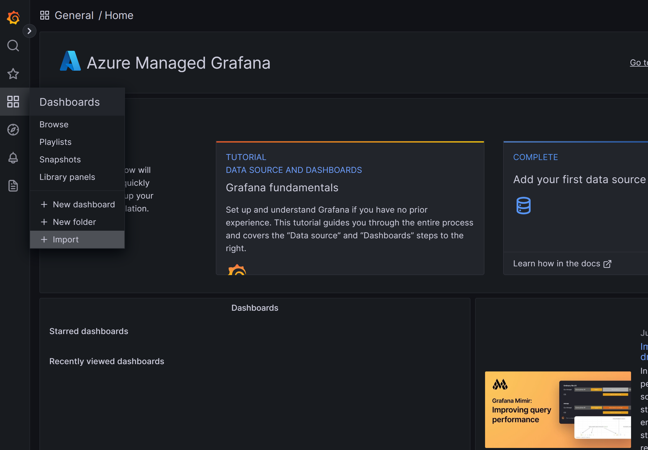 Let's import this by returning to our Grafana instance and navigating to the import tab: