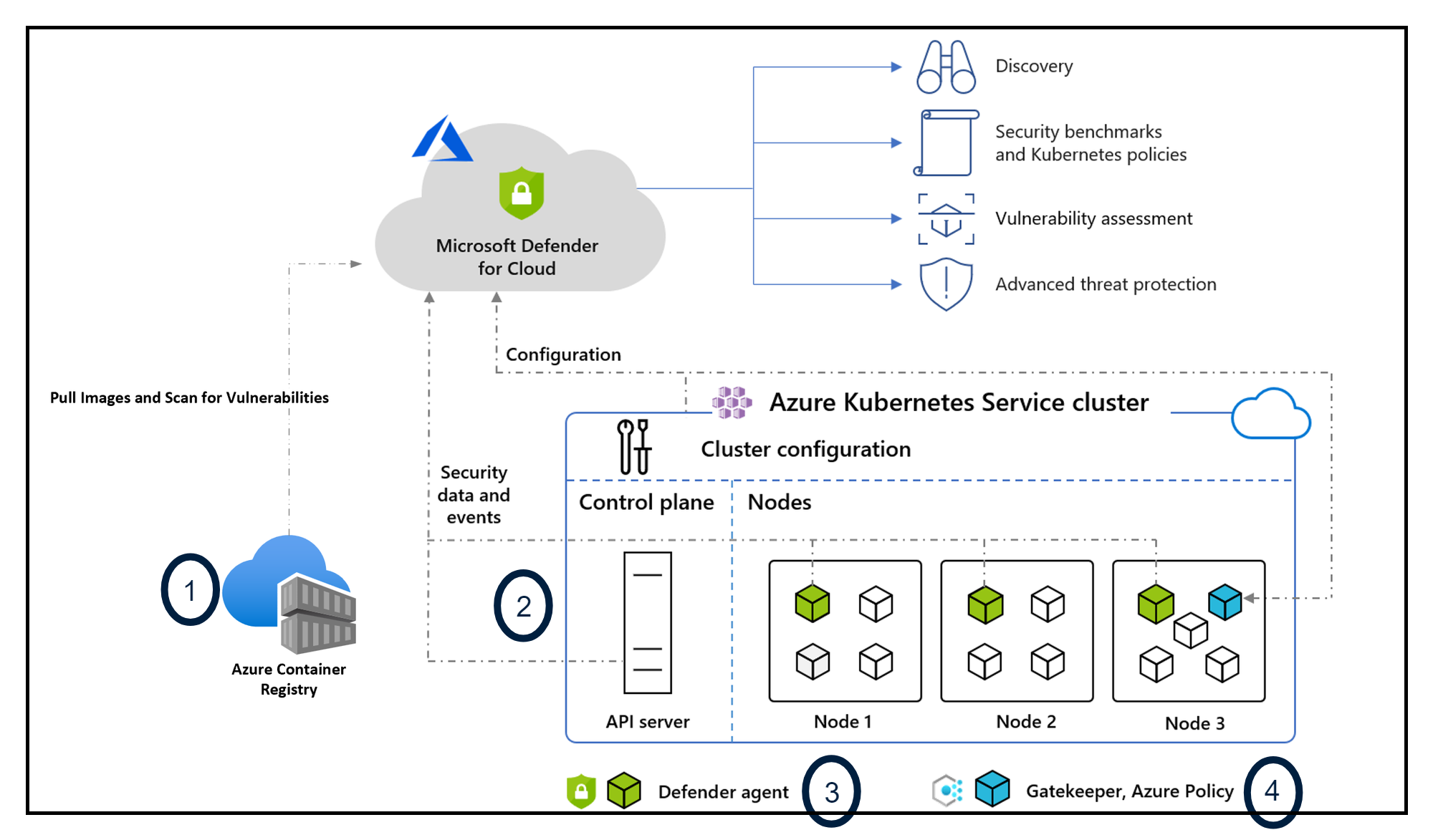 What this means is that Defender for Containers can query your Kubernetes API server to inventory the resources deployed to your Kubernetes environment (pods, services, namespaces, etc.). It also allows Defender to do Control Plane Hardening, meaning Defender will detect suspicious activity for Kubernetes based on your audit trail or configuration applied to the control plane.