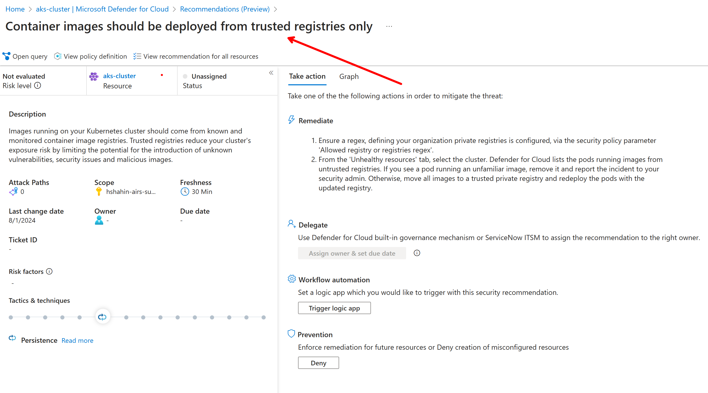 For example, you most likely want to enforce that your clusters are only running images from registries you explicitly trust. Azure Policy on Kubernetes will report back when in audit mode anything "unhealthy", meaning you are running a container that was not in the list of trusted registries and furthermore if you shift the policy to deny mode, Kubernetes will block any deployment if the image is not coming from a trusted registry.