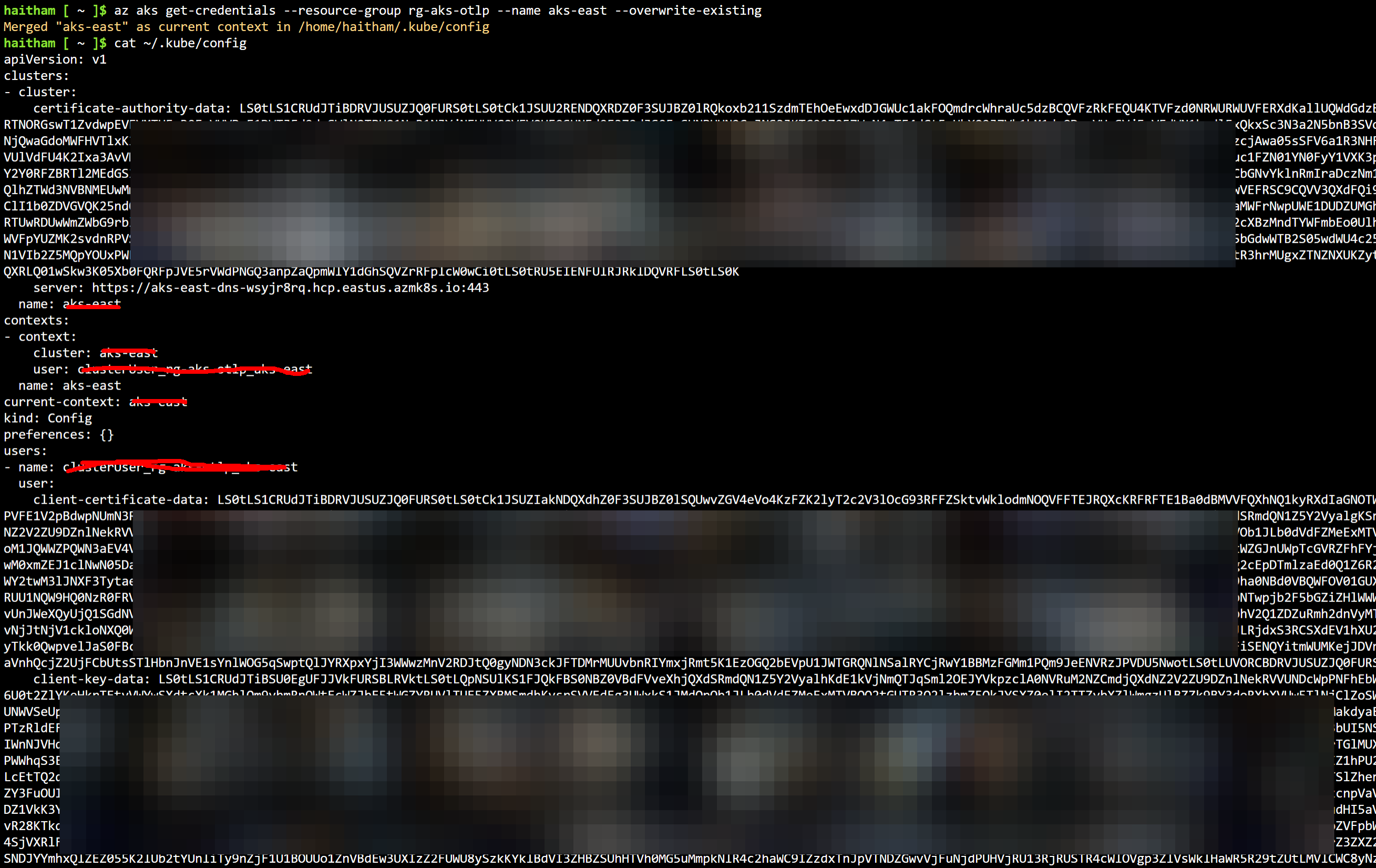 Once this is configured, you will see that when the credential is pulled the kube-config file looks different from the local account. It no longer contains the private key used for authentication; instead, we are now using a credential plugin cli tool called kubelogin to obtain a token from Azure AD before a request gets sent to AKS: