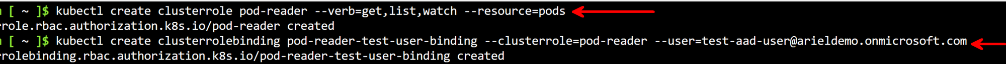 This is an important point to note: Kubernetes RBAC still applies even when we enable Azure RBAC. Kubernetes RBAC can get you finer-grained roles and permissions as shown above - we were able to define a Pod-Reader role which applied at the cluster-scope. This is more detailed than the built-in Azure Reader RBAC role.
